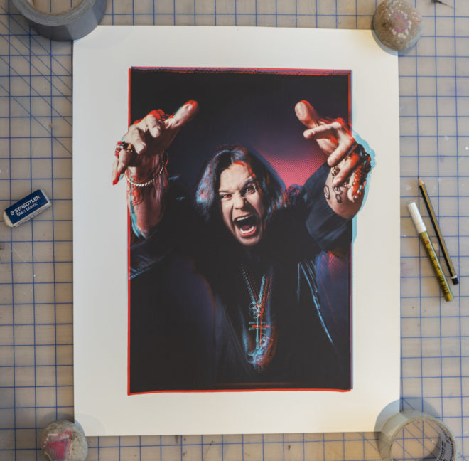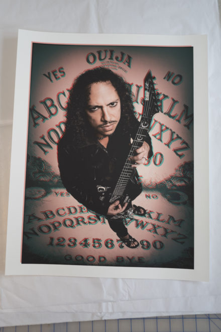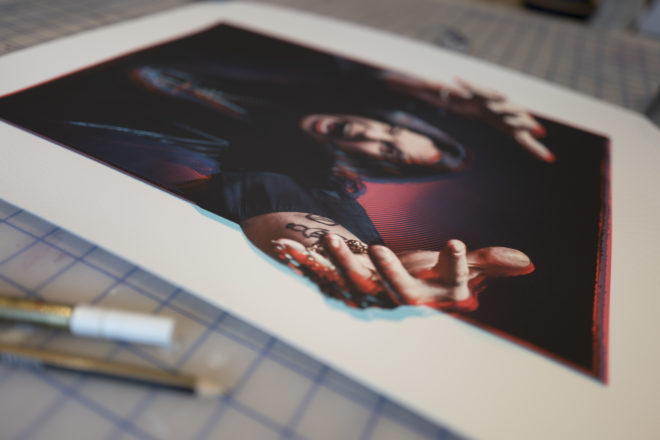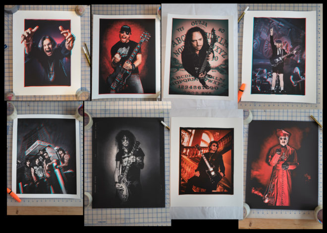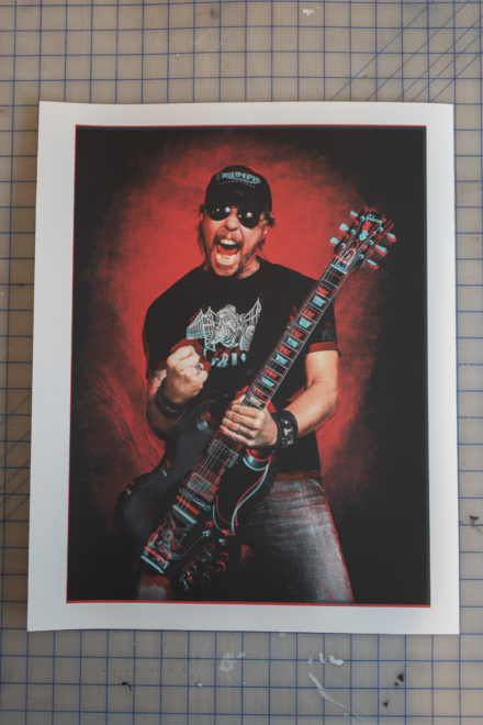 I asked my printer Roo at KANGAROOZ who has been producing fine art and display prints for the last 30 years to find the best paper to print live concert photographs. For most of my previous portrait limited editions I have used an incredible 100% cotton heavy weight paper which I love. The texture and quality is similar to a screen print but I knew this wouldn’t work for these Legacy tour pictures. Firing off a test print on standard photo paper produced blacks I didn’t like and the colours looked dull compared to how the image looked on screen.
