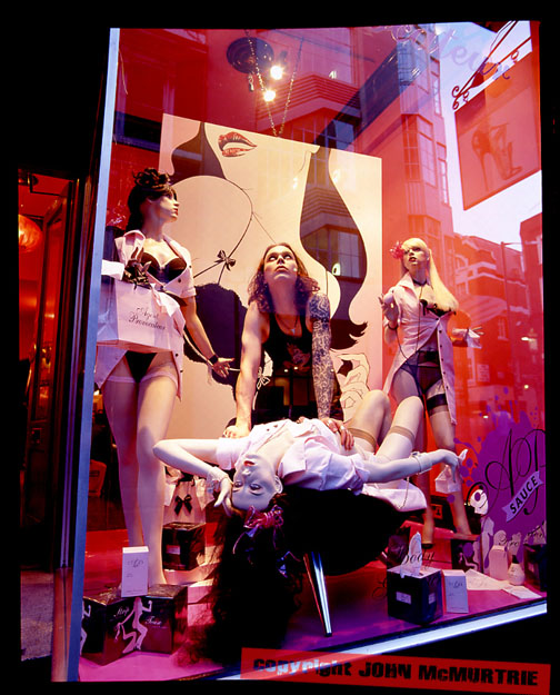 As promised here are a few shots of Ville that have never been seen before! They were taken at ‘Agent Provocateur’ the sex shop in SoHo. I can’t believe we got away with the shots in the window!