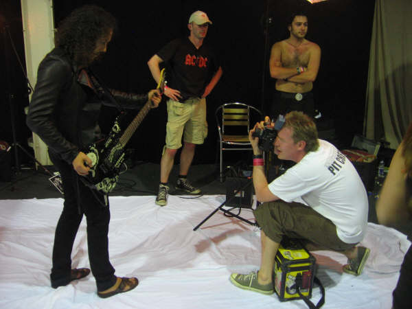 Below is a rare shot of me in action – at this years Download Festival. I set up a studio on site to photograph this years Total Guitar Summit. Behind Kirk from Metallica is the brilliant Brad Merrett who co-ordinated the shoot and my assistant ‘caveman’ Chris who so wishes he hadn’t agreed to help!