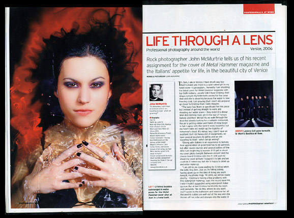 This month’s Photography Monthly magazine has a great behind the scenes piece on the Lacuna Coil feature in Venice.