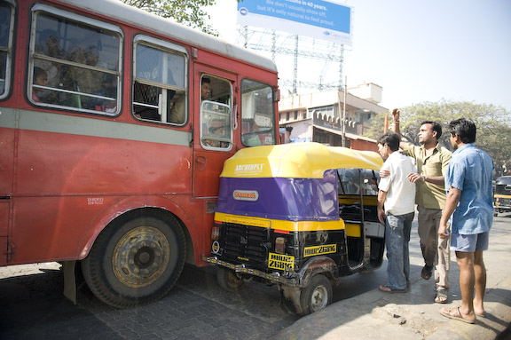 Road rage Bombay style – I suspect its not the tuk tuk’s first collision?