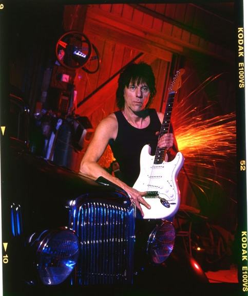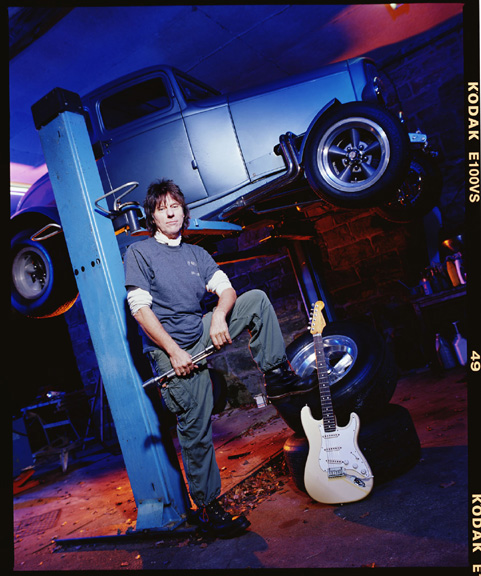 To celebrate Fender Guitars 60th Birthday I was commissioned to shoot the legendary Jeff Beck at his home – These shots were taken just before Christmas in his garage with his own personal collection of Hotrods.